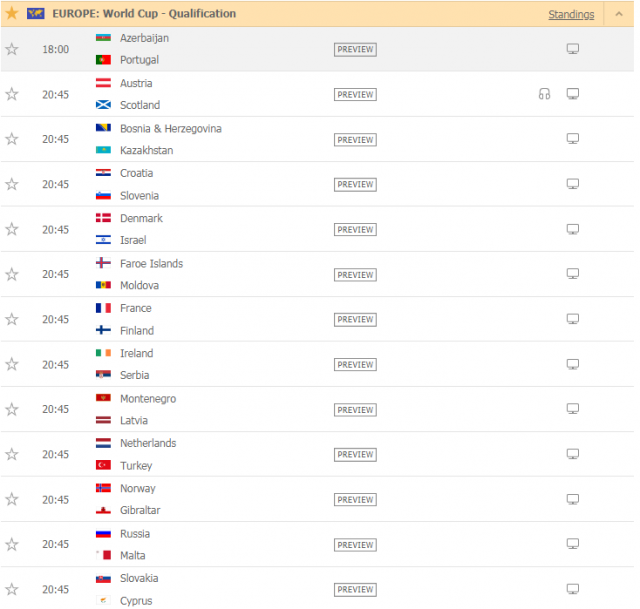 Takimi i vetëm i ditës që luhet nga ora 18:00 është mes Azerbaijxhanit dhe Portugalisë.
