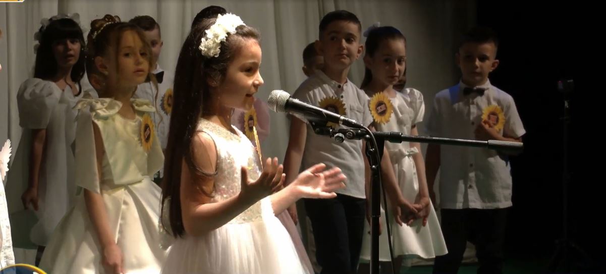 Të kujdesur deri në detaje, secili me një germë identifikuese, të vegjlit recitojnë e këndojnë, duke performuar me krenari njohuritë që morën në vitin e parë në bankat e shkollës.