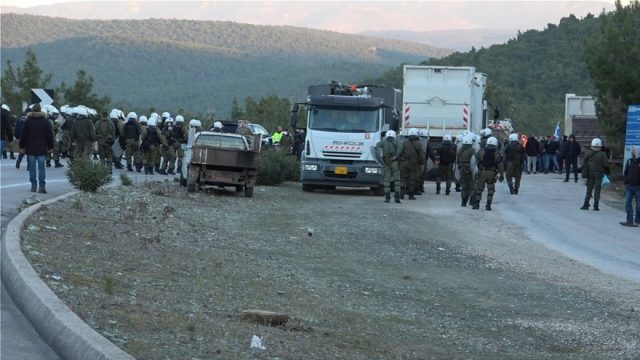 Banorët e ishujve Lesbos dhe Chios kanë përplasur mëngjesin e sotëm me policinë për të kundërshtuar ngritjen e kampeve për refugjatët ne zonat e banuara prej tyre.