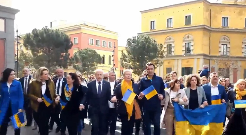 Mayor Veliaj, the Ukrainian ambassador, ambassador Kim, minister Spiropali and other well-known figures are present at the march.
