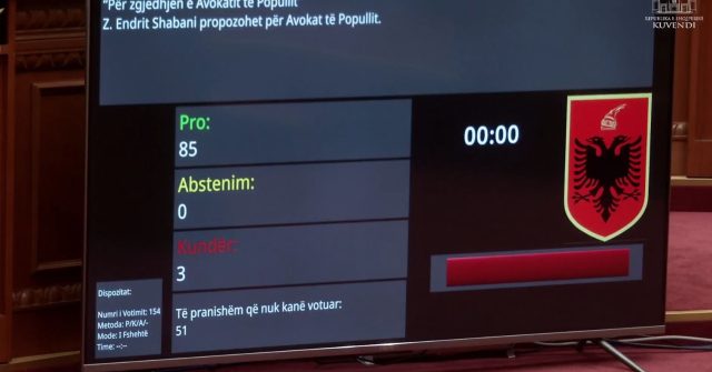 Me firmat e PD dhe votat e PS, Endrit Shabani u zgjodh Avokati i Popullit.