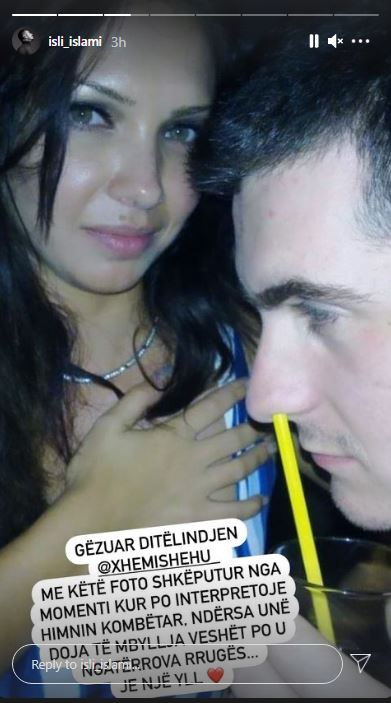 “Gëzuar ditëlindjen Xhemi Shehu. Me këtë foto shkëputur nga momenti kur po interpretoje himnin kombëtar. Ndërsa unë doja të mbyllja veshët po u ngatërrova rrugës… je një yll
