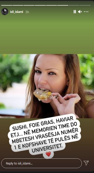 Sushi, foie gras, haviar etj… në memorien time do mbetesh vrasësja numër 1 e kofshëve të pulës në universitet”, ka shkruar Isli me shaka përkrah fotove. l.k/abcnews.al