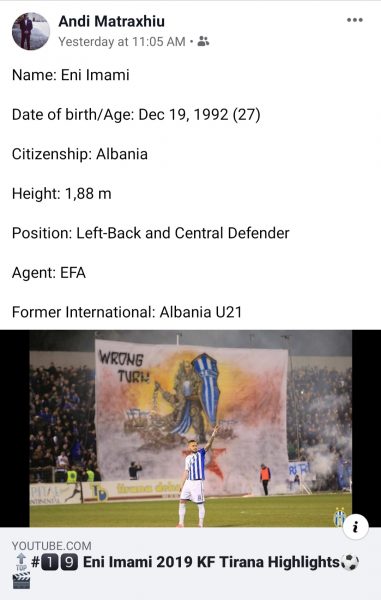 Largimet janë të pashmangshme dhe me shumë mundësi Eni Imami është njëri prej tyre. I aktivizuar si mbrojtës qendre, lojtari që luan në gjithë linjën e majtë, duket se është në merkato.