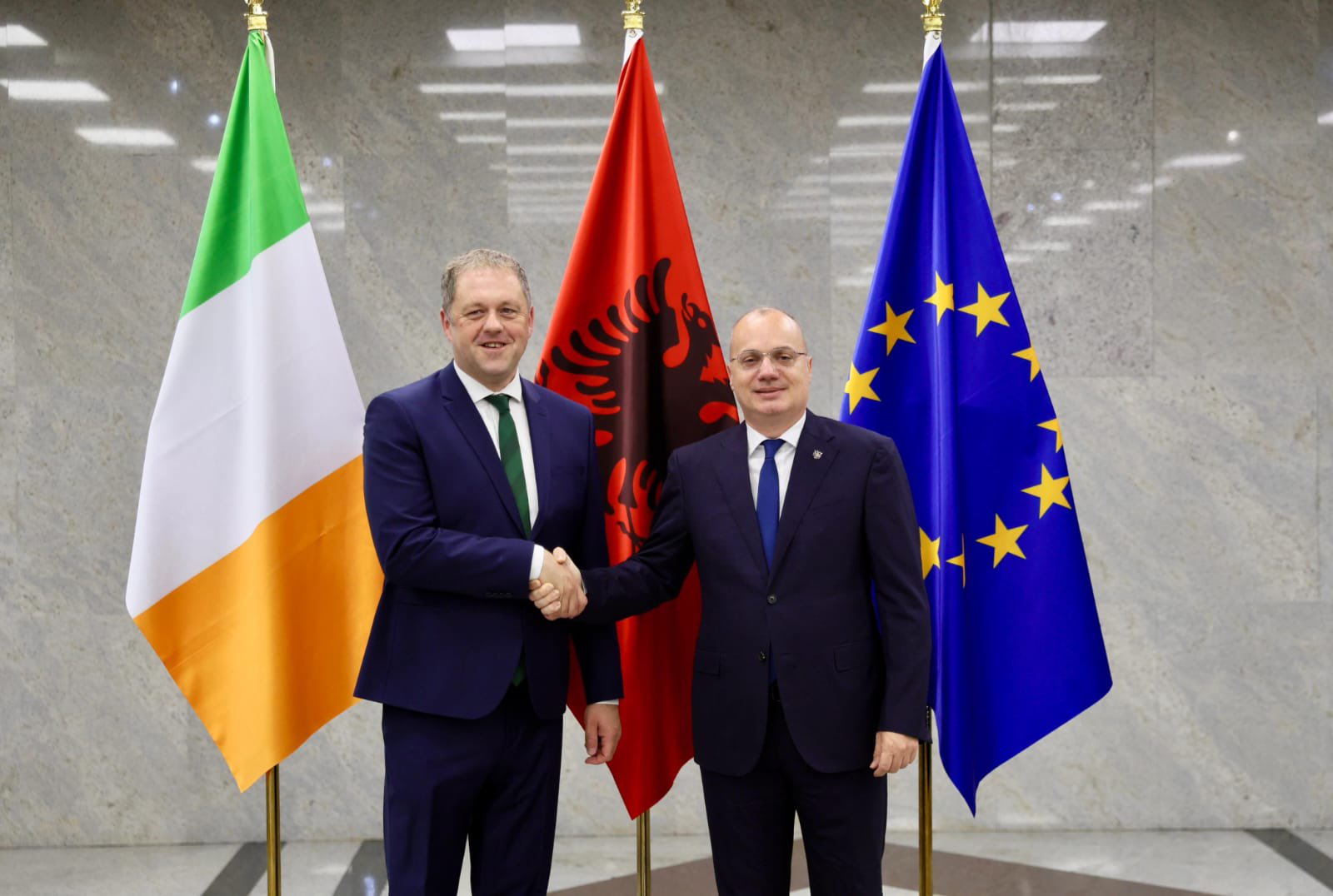 “Mirënjohje për mbështetjen e qëndrueshme të Irlandës për procesin e zgjerimit dhe për përkrahjen konkrete në rrugëtimin tonë drejt anëtarësimit. Shpresojmë të thellojmë bashkëpunimin edhe më tej gjatë Presidencës së Irlandës në Këshillin e BE- së në gjysmën e dytë të vitit 2026,” u shpreh Ministri Hasani.