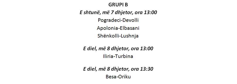 Apolonia ka një sfidë të lehtë në letër, me Elbasanin e vendit të fundit. Të tria këto sfida do të zhvillohen sot prej orës 13:00. Dy ndeshjet e tjera të javës luhen të dielën. Iliria Turbina luhet e para, ndërkohë që 30 minuta më pas Besa ndeshet me Orikun.