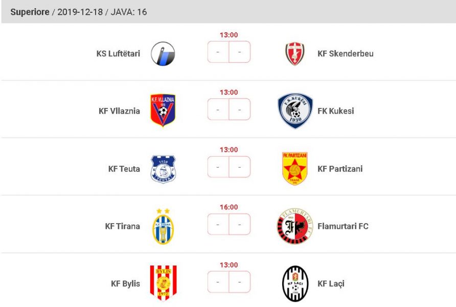 Superiorja vijon marshimin, teksa sot zhvillohet java e 16-të e kampionatit. Ka disa përballje interesante dhe shumica e tyre nisin prej orës 13:00 dhe vetëm Tirana-Flamurtari tre orë më pas, në 16:00. Pas triumfit në derbi, bardheblutë e kanë detyrim të fitojnë me vlonjatët e vendit të fundit, që në sfidën e parë i morën pikë skuadrës kryeqytetase.