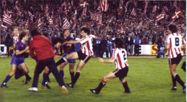 Në një ndeshje me Athletic Bilbao ylli i Argjentinës bëhet shkak i një sherri masiv dhe skandali dhe pas asaj ngjarje të bujshme, drejtuesit vendosin ta shesin. Një Superkupë, një La Liga dhe një Kupë Mbreti në Spanjë dhe Napoli bëhet pronar i tij në 1984-ën.