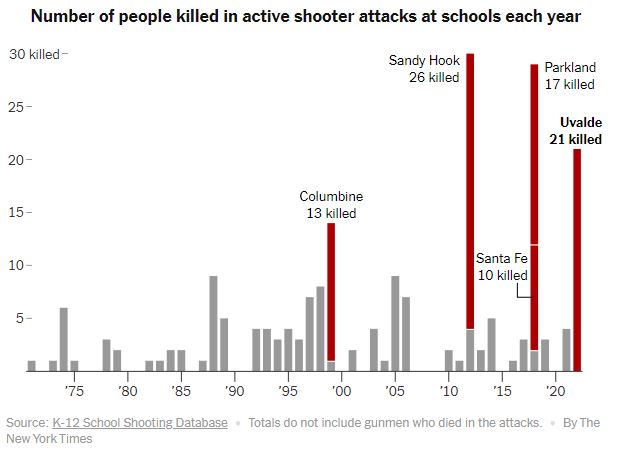 Sipas New York Times, ky është sulmi i dytë më vdekjeprurës në një shkollë në historinë e vendit. Në shkollën Sandy Hook në Newtown, Connecticut, në vitin 2012 gjithsej  26 persona u vranë duke përfshirë 20 fëmijë të vegjël.
