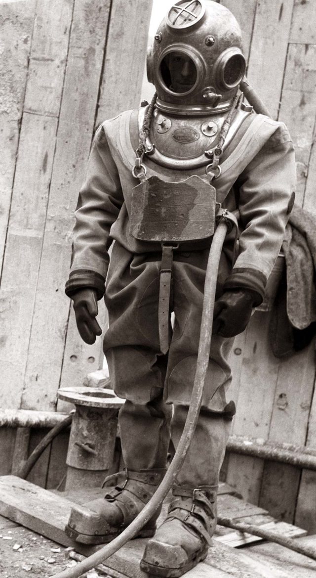 Kostumi i parë për zhytje është  ekspozuar në 1867. Kostumi i zhytjes së dyshes franceze ishte bërë prej gome dhe përmbante një maskë bakri dhe një “mushkëri artificiale”.