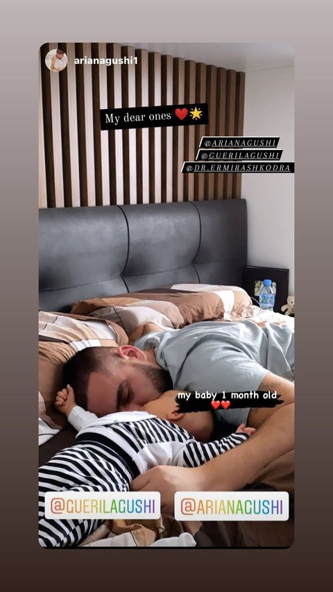 Që nga ardhja në jetë e Guerilit me 28 Nëntor, Gold Ag dhe partnerja e saj Ermira Shkodra kanë ndarë me ndjekësit disa imazhe të ëmbla të djalit të tyre. Sot, bëhet një muaj që artisti dhe Ermira shikojnë prindërimin, dhe kjo e fundit ka publikuar një fotografi të bukur në rrjete sociale. Në foto shihet Goldi duke qëndruar i shtrirë pranë të birit.