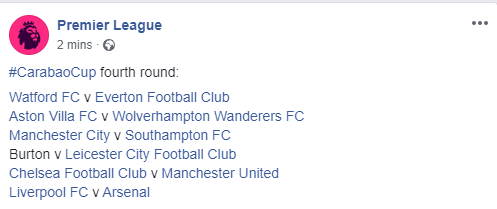 Menjëherë pas përfundimit të këtyre takimeve, është hedhur shorti për raundin e katërt të EFL Cup. Sfida kryesore do të jetë padiskutim ajo mes Liverpool dhe Arsenalit. Chelsea do të përplaset me Manchester United, një tjetër sfidë “big”. Watford do të presë Evertonin, ndërsa Aston Villa do të luajë kartat përballë Wolves. Short i lehtë për Manchester City, pasi ka “peshkuar” ekipin e Southampton./abcnews.al