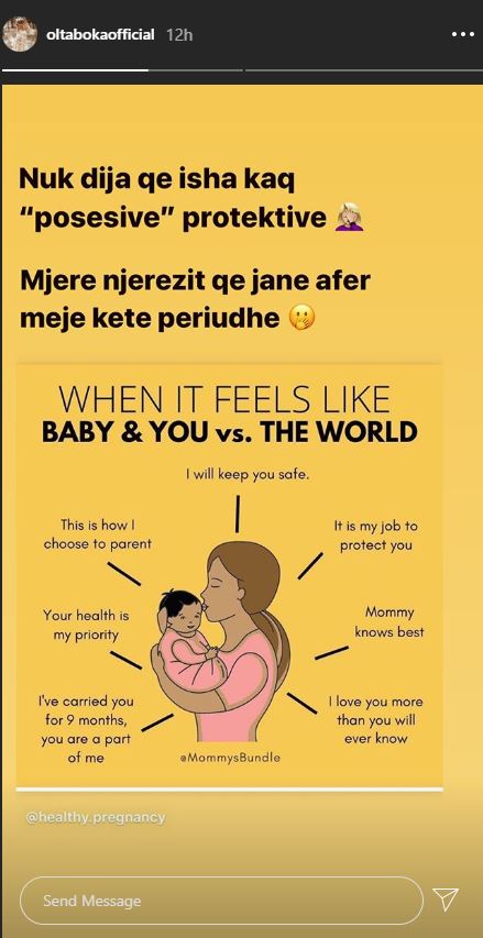 Përmes një postimi në InstaStory, këngëtarja ka treguar se orët e para të ardhjes në jetë të vogëlushes kanë qenë momentet më të bukura në jetë për të.