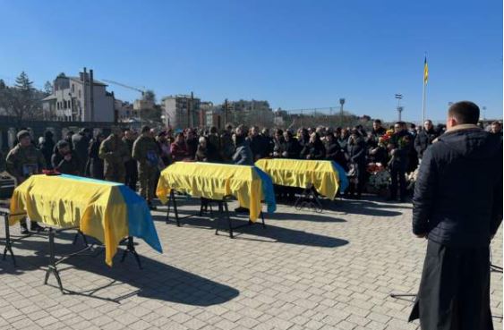 Të vdekurit ishin Sgt Dmytro Kabakov, 59 vjeç, oficeri i lartë Andriy Stefanyshyn, 40 vjeç dhe Toger Taras Didukh, 25 vjeç. Në mes të funeralit u dëgjuan alarmet e sulmit ajror, shkruan BBC.