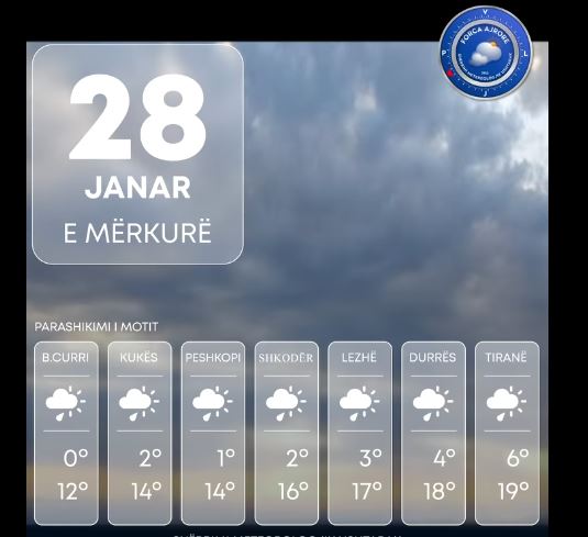 Për ditën e mërkurë  vendi ynë do të ndikohet nga kushte atmosferike të paqëndrueshme.