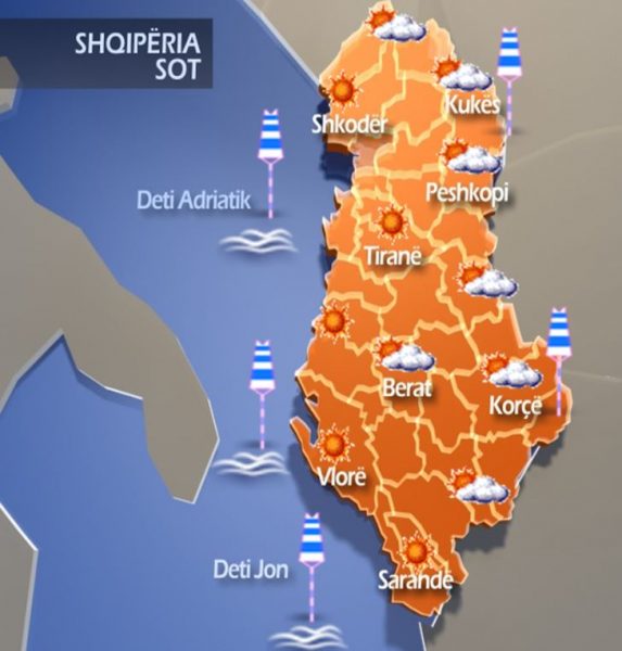 Sipas MeteoAlb: Kthjellime dhe vranësira të lehta paraqiten zonat malore por kryesisht mot i kthjellët mbizotëron në zonat bregdetare. Të njëjtat kushte atmosferike do të mbeten edhe gjatë pasdites dhe orëve të natës.
