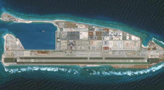 Kina pretendon se ka në zotërim pothuajse të gjithë Detin e Kinës Jugore dhe që nga viti 2014 ka ndërtuar shkëmbinj nënujorë dhe ishuj artificialë të fortifikuar me raketa, pista dhe sisteme armësh – duke hasur kundërshtime nga qeveritë e tjera .