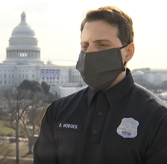 Sipas një video të publikuar nga sulmi i datës 6 Janar, shihet qartë Hodges, i cili është i bllokuar nga një derë metalike, i mbuluar me gjak dhe duke bërtitur për ndihmë.