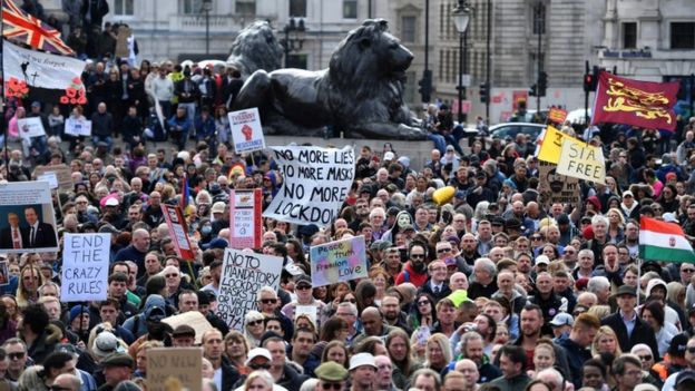 Udhëheqësi i lëvizjes Piers Corbyn, vëllai i ish-kreut laburist Jeremy Corbyn, ishte mes protestuesve që konsiderohen nga qeveria si “mbështetës të konspiracionit”.