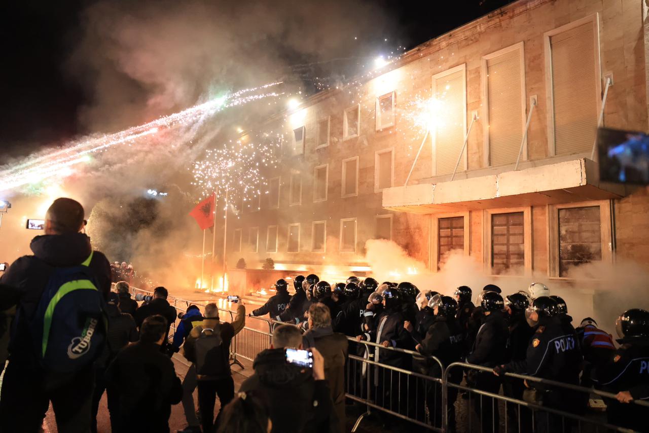 Aktualisht, tre persona janë shoqëruar nga Policia pas hedhjes së molotovëve dhe fishekzjarrëve drejt kryeministrisë.