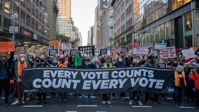 Pas zgjedhjeve presidenciale në Shtetet e Bashkuara të Amerikës janë shtuar tensionet. Deklaratat e presidentit Donald Trump për vjedhje votash dhe kërkesat e tij për një rinumerim votash kanë shkaktuar  protesta nga mbështetësit e të dy krahëve politik në disa shtete. Demostruesit u ndanë në dy grupime, mbështetësit e demokratëve protestuan kundër deklaratave të presidentit ndërsa përkrahësit e republikanëve kërkuan ndalimin e numërimit me pretendimin se procesi po manipulohet.