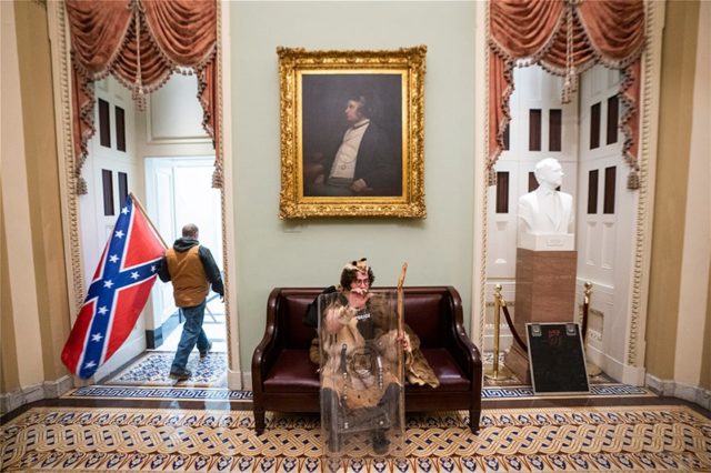 Fotografitë tregojnë kaosin pas incidenteve të shkaktuara nga protestuesit, mbështetës të Presidentit të SHBA Donald Trump. Imazhet shkaktojnë trishtim dhe shqetësim. Ndërtesa u dominua nga banderola dhe fletushka me parulla të tilla si “tradhtarë” dhe “ndaloi vjedhjen”.