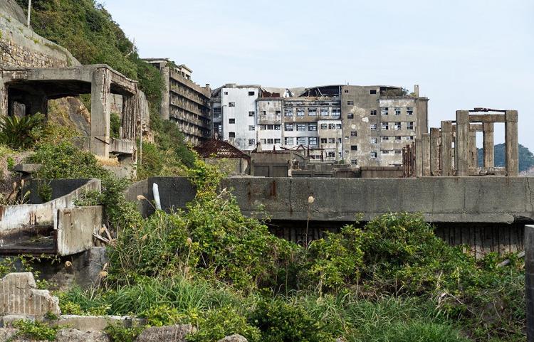 Ishulli është i rrethuar nga mure të larta prej betoni në mënyrë që të mos preket nga tajfunët dhe cunamet. Popullsia e tij shkoi në zero në në 1974 dhe që nga ajo kohë njihet si një qytet fantazmë për shkak se njerëzit u larguan nga ishulli në pamundësi për të gjetur punë.