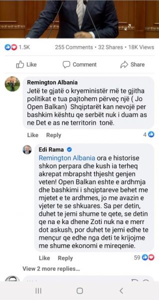 Long live, Prime Minister, I agree with all your policies except one (Not Open Balkan). “Albanians need unity, so we do not want Serbs either at sea or in our territory,” wrote the citizen.
