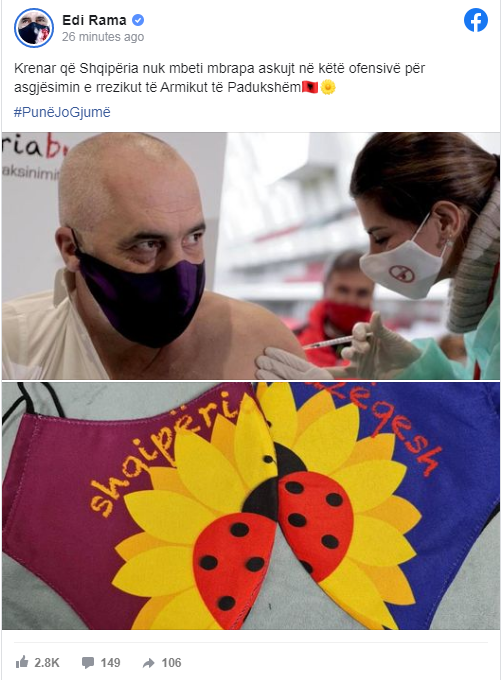 “Krenar që Shqipëria nuk mbeti mbrapa askujt në këtë ofensivë për asgjësimin e rrezikut të Armikut të Padukshëm”, shkruan Rama krah fotos.