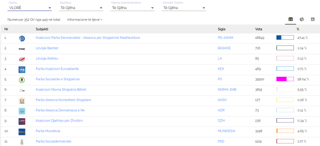 VLORË- Partia Socialiste vijon të kryesojë bindshëm ndaj Partisë Demokratike edhe në qarkun e Vlorës.