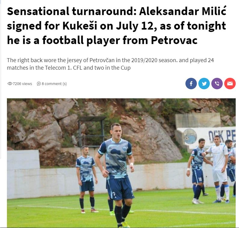Për Milic transferimi te Kukësi do të ishte lëvizja e parë jashtë Malit të Zi, ndaj edhe sipas rregullave të FIFA-s duhej zgjidhur problemi i “Training compensation”. /abcnews.al