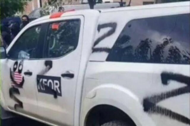While Serbs continues to gathers in the north of the country, the letter “Z” has been marked on the cars of the Kosovo Police and those of KFOR, Putin’s symbol in the war of conquest in Ukraine.