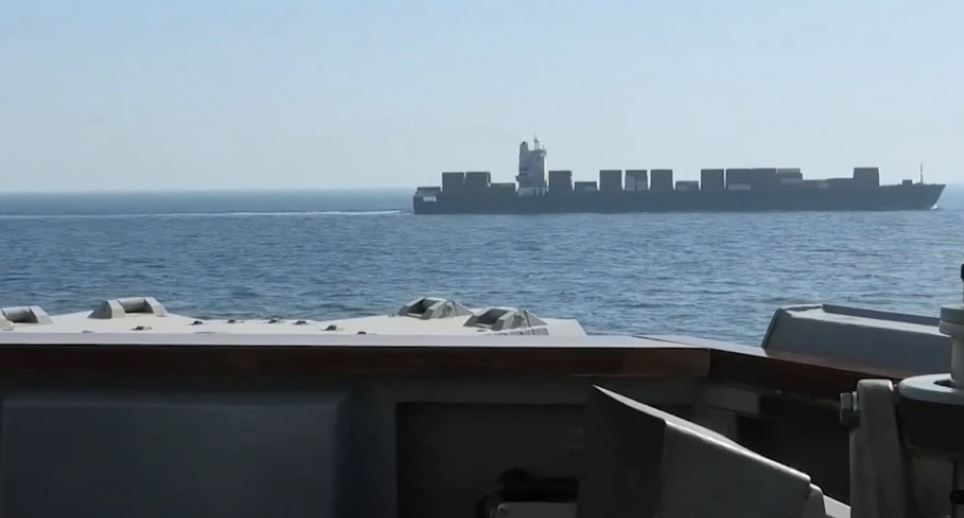 Pamjet e publikuara nga Komanda Qendrore e SHBA-së tregojnë një ushtar që drejton një topin drejt një anijeje, dhe një zë që shfaqet duke i dërguar një mesazh anijes.