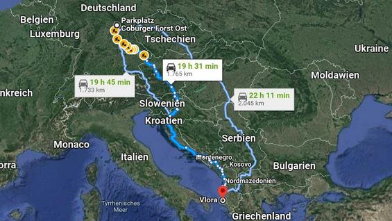 Sipas policisë, autobusi ishte me shërbime ndërkombëtare të planifikuara nga qyteti i Vlorës në Shqipërinë për në Hamburg – rreth 2300 kilometra. Nga Vlora në Koburg është gati 1800 kilometra.