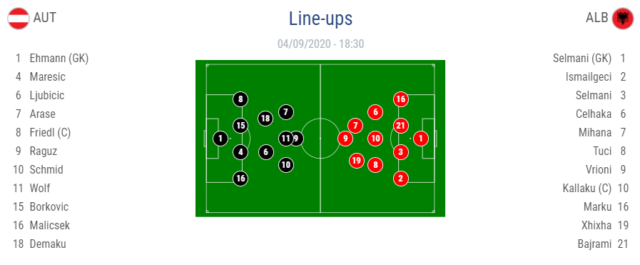 Ismajlgeci do të luajë në të majtë të prapavijës. Çelhaka dhe Kallaku do të luajnë para mbrojtjes, ndërsa Xhixha dhe Mihana në krahët e mesfushës. Tuci do të luajë si fantazist, mbrapa sulmuesit të vetëm Giacomo Vrioni./abcnews.al