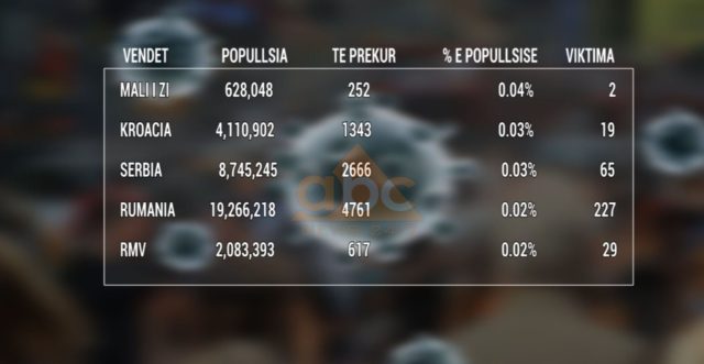 Mali i Zi, Kroacia dhe Serbia kanë përqindjen më të madhe të personave të prekur me koronavirus në rajon në raport me numrin e popullsisë që kanë.