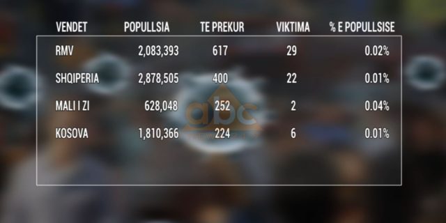 Serbia është e treta për nga numri i të prekurve, por në përqindje, në raport me numrin e popullsisë që ka, renditet me 0.03 përqind.