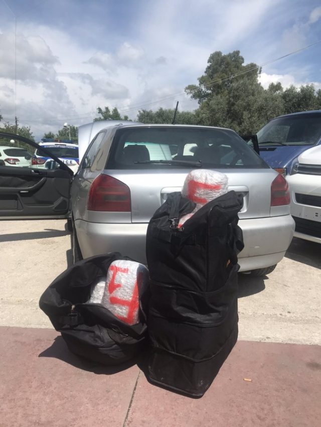 Pas kontrollit të ushtruar në makinë është gjetur dhe sekuestruar 20 pako me 20 kg 500 gram marijuanë, 3 celularë dhe 200 euro.