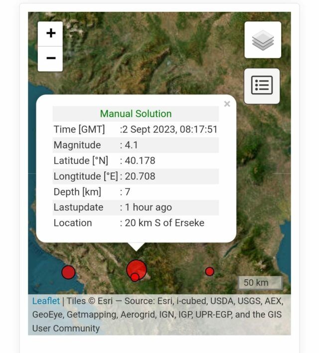 Moreover, the earthquake had its epicenter 20 kilometers away from the city of Erseka, where it was felt the most.