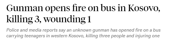 “Një burrë i paidentifikuar hapi zjarr ndaj një autobusi që po bartte adoleshentë në perëndim të Kosovës të premten, duke vrarë tre persona e duke plagosur një tjetër, thonë policia e raportimet e mediave”, shkroi agjencia “Associated Press”, raporton Gazeta Express.