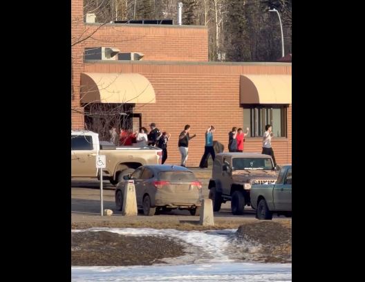 Këto janë pamjet pas sulmit tragjik në një gjimnaz në Kanada, ku të paktën 10 persona humbën jetën si pasojë e të shtënave me armë zjarri. Nxënësit shihen duke dalë nga shkolla me duart e ngritura lart, derisa policë të armatosur rëndë i shoqërojnë në zonat më të sigurta.