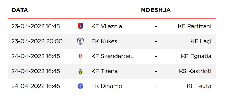 Erzeni i vendit të dytë pret Besën, ndërkohë që një duel të vështirë ka në program Apolonia ndaj Burrelit. Interesante edhe sfida Tërbuni-Turbina. Lushnja, Korabi dhe Pogradeci luajnë në transferta kundër ekipeve të rëna në Kategorinë e Dytë: Vora, Shkumbini dhe Maliqi. / abcnews.al