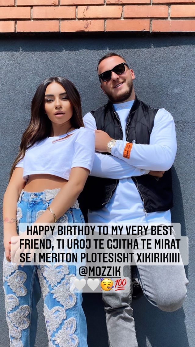 Ndërkohë, nuk kishte si të mos mungonte dhe urimi i Kidës për bashkëpunëtorin më të mirë në muzikë, e cila teksa ka ndarë një foto krah Mozzik, ka shkruar: “Gëzuar ditëlindjen për shokun tim më të mirë, të uroj gjithë të mirat se i meriton.”
