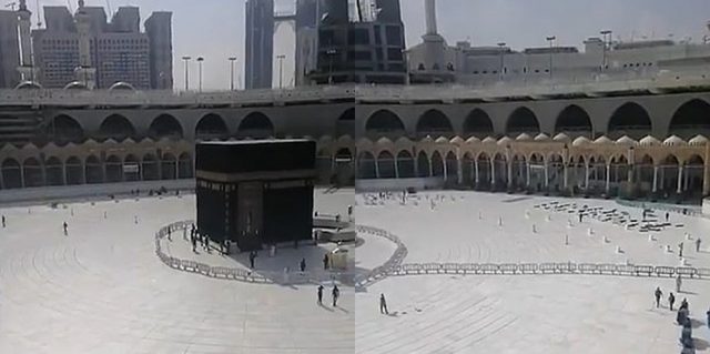 Sheshi është boshatisur për të për t’u dezinfektuar zona në mënyrë që të ngadalësohet sa më shumë përhapja e koronavirusit. Fotot e shpërndara në rrjet tregojnë zonën rreth Qabesë, vendi më i shenjtë për islamin, të shkretuar plotësisht.
