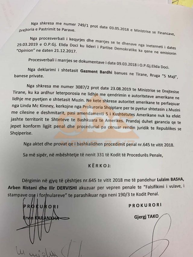 Tirana Prosecutor’s Office has also closed the investigation on former DP Secretary Arben Ristani and DP financier Ilir Dervishi.