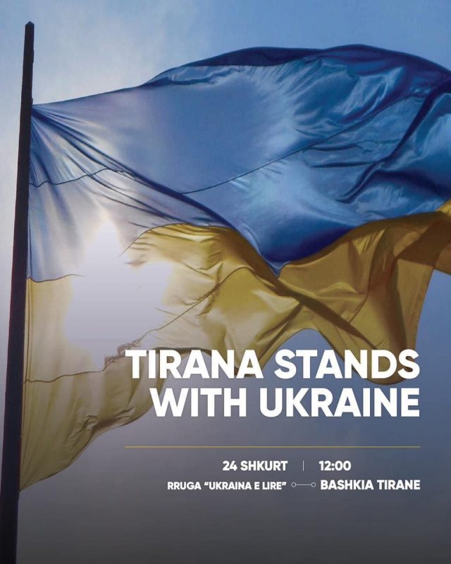 “February 24 marks one year since the start of Russia’s war against Ukraine! Tirana stands in solidarity with the right of every Ukrainian citizen to be free. I invite you to be together during the demonstration, in support of the heroic resistance of the Ukrainian people against Russian aggression. WE ARE WITH YOU!