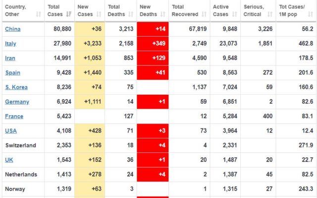 Ka shkuar në 27,980 numri i personave të infektuar nga koronavirusi në Itali. Gjatë ditës së sotme janë regjistruar 3,233 raste të reja. Nga numri total, vetëm gjatë ditës së sotme kanë ndërruar jetë 349 persona. Numri i personave që janë shëruar plotësisht është 2,749.