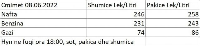 From this afternoon, a liter of diesel will be sold for 258 ALL, while a litre of gasoline for 243 ALL.