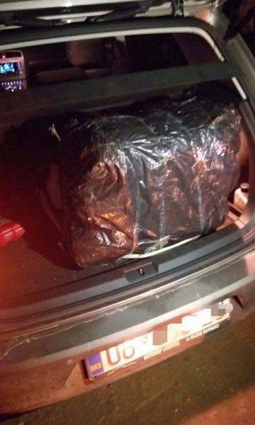 Gjatë operacionit të kontrollit në bagazhin e automjetit janë gjetur tri (3) çanta me gjithsej nëntë (9) paketime me substancë të dyshuar narkotike.