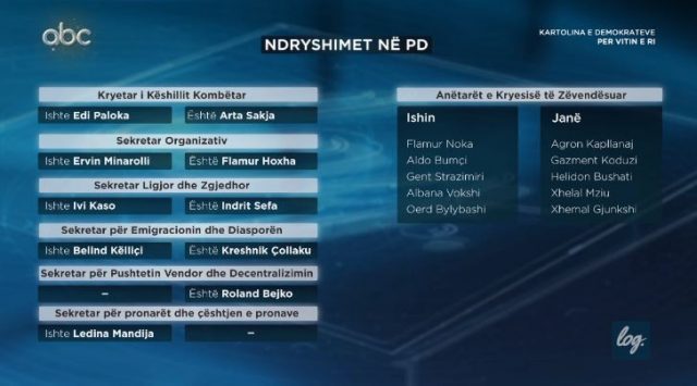 Gazetari i emisionit “Log.” Adi Darsi solli përmes një tabele të gjitha ndryshimet që janë bërë nga Lulzim Basha në mbledhjen e fundit të këshillit kombëtar.